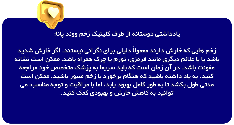 اگر زخم شما خارش خاصی دارد یا علائم دیگری از عفونت مانند قرمزی، تورم یا ترشح را نشان می دهد. بهتر است با یک ارائه دهنده مراقبت فوری مشورت کنید. برای تعیین علت خارش و دریافت درمان مناسب، سریعا اقدام کنید.